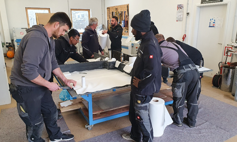 Auf Wunsch unseres langjährigen Kunden, der Dachdecker-Firma Fink Flachdachsanierung GmbH, fanden Mitte Februar zwei Schulungstage in den firmeneigenen Räumlichkeiten in Grasbrunn statt. Während der Praxistage schulten unsere KEMPER SYSTEM-Techniker Ralf Zier und Julian Sloan die Mitarbeiter in Theorie und Praxis zu den KEMPEROL Produkten. Neben dem theoretischen Teil rund um Flüssigkunststoffabdichtungen, wurden die Mitarbeiter in der Verarbeitung zu unseren KEMPEROL Produkten geschult.